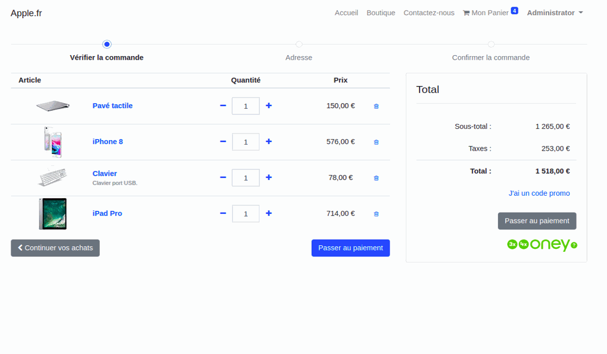 Proposez à vos clients différentes méthodes de règlement PayPlug (CB), Oney (3/4 fois en CB), Paypal, Stripe etc...